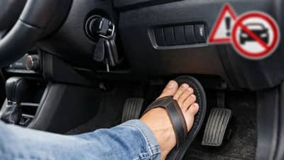 કાયદો ચંપલ પહેરીને વાહન ચલાવવા પર પ્રતિબંધ મૂકતો નથી, પરંતુ તેમાં રહેલા જોખમોને ધ્યાનમાં લેતા, બૂટ પહેરવું એ શ્રેષ્ઠ વિકલ્પ છે. ટ્રાફિક નિયમો અનુસાર, ચંપલ પહેરીને વાહન ચલાવવા બદલ કોઈ દંડ નથી. તમે ચંપલ પહેરો કે ચંપલ, મોટર વાહન કાયદામાં એવી કોઈ જોગવાઈ નથી કે જેના પરિણામે દંડ થઈ શકે.