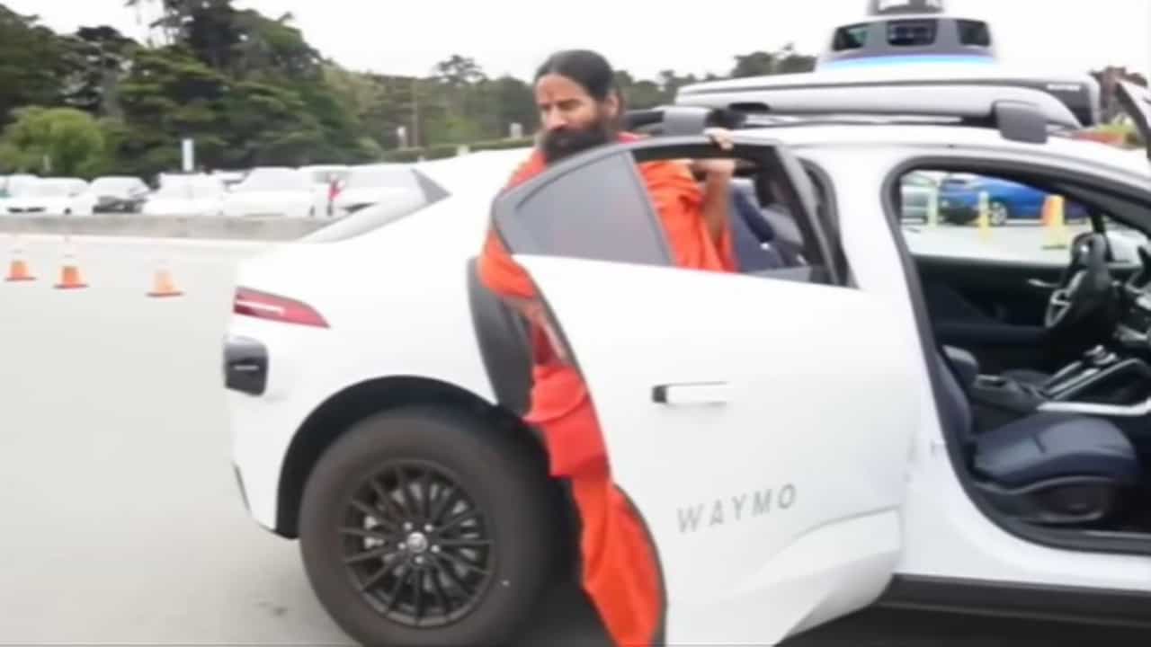 સ્વામી રામદેવ ફોર વ્હીલરમાં બેઠા કે તરત જ તેમણે કહ્યું કે કાર જગુઆર હતી. તેમણે આગળ કહ્યું, “આ ખૂબ જ વ્યસ્ત વિસ્તાર છે, અહીં દરેક જગ્યાએ ટ્રાફિક છે.” કૅમેરો કારના સ્ટિયરિંગ અને ડ્રાઇવરની સીટ બતાવે છે, જ્યાં કોઈ બેઠું નથી.