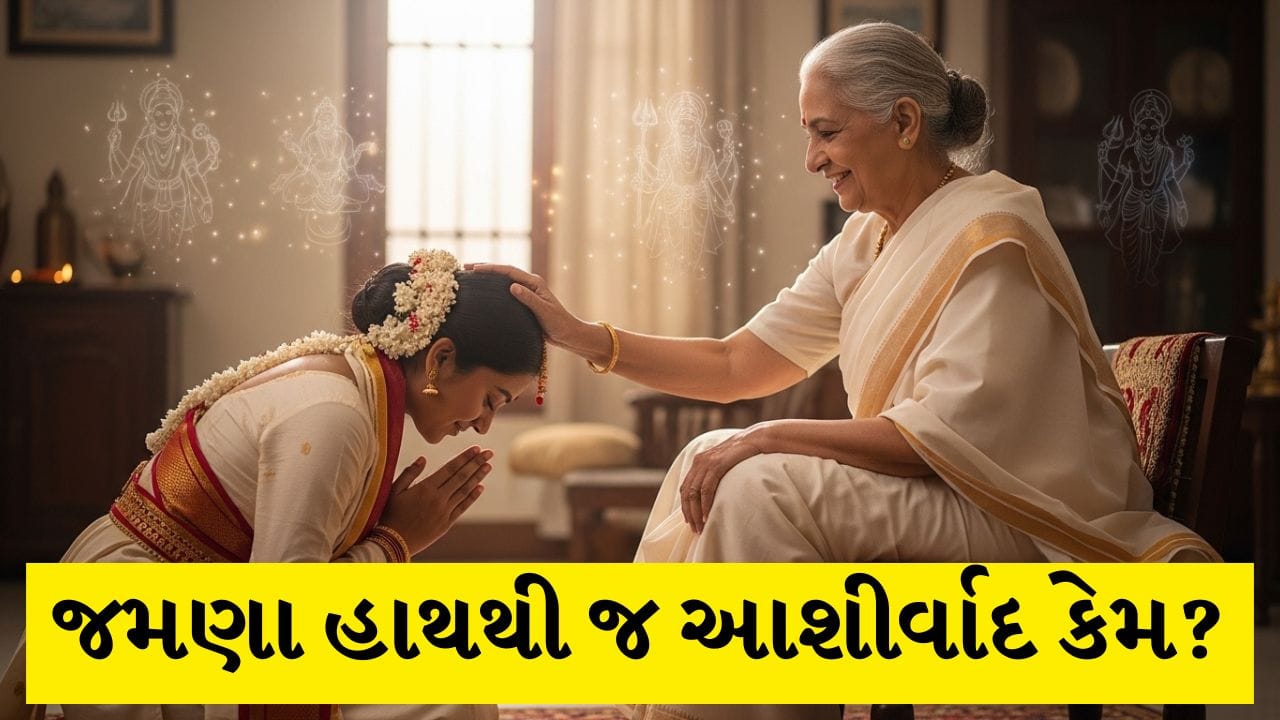 ઘર, ધાર્મિક કાર્યક્રમ અથવા કોઈ શુભ પ્રસંગ હોય, ત્યારે મોટા ભાગે જમણા હાથથી આશીર્વાદ લેવાનું નિયમ છે. લોકો જીવનમાં પ્રગતિ, ધન, સ્વાસ્થ્ય અને સુખ માટે આ આશીર્વાદને મહત્વ આપતા જોવા મળે છે. આ માત્ર પ્રકાશિત પરંપરા નથી પણ આદર અને શ્રદ્ધાની એક દૃઢ અભિવ્યક્તિ છે.