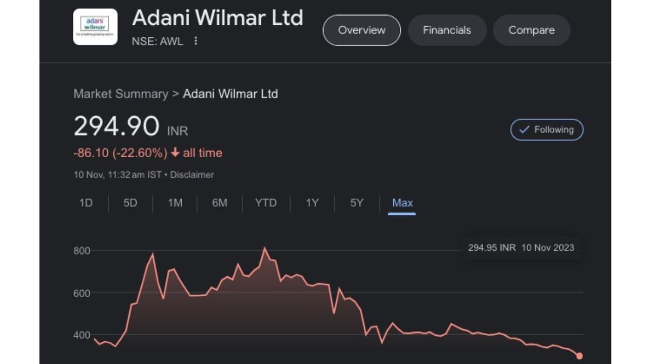 Breaking News : અદાણી વિલ્મરના શેર ધડામ, ઓલ ટાઈમ લો સાથે જાણો કેવી છે અદાણીના આ શેરની સ્થિતી