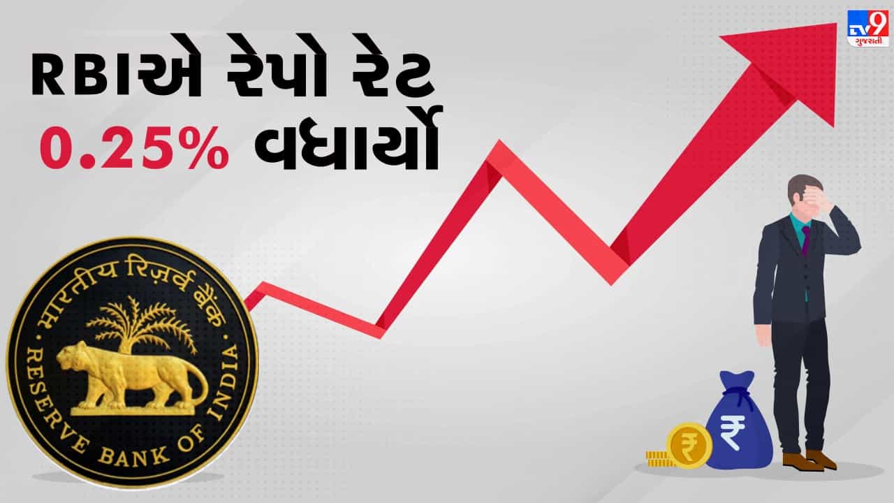 ભારતીય રિઝર્વ બેંકે ફરી એકવાર સામાન્ય માણસને ફરી આંચકો આપ્યો છે. આરબીઆઈએ રેપો રેટમાં 25 બેસિસ પોઈન્ટ અથવા 0.25 ટકાનો વધારો કર્યો છે. આ પછી તમામ પ્રકારની લોન મોંઘી થઈ જશે. દેશમાં મોંઘવારી અંકુશમાં આવ્યા બાદ પણ RBIએ દરો વધારવાનો નિર્ણય લીધો છે.