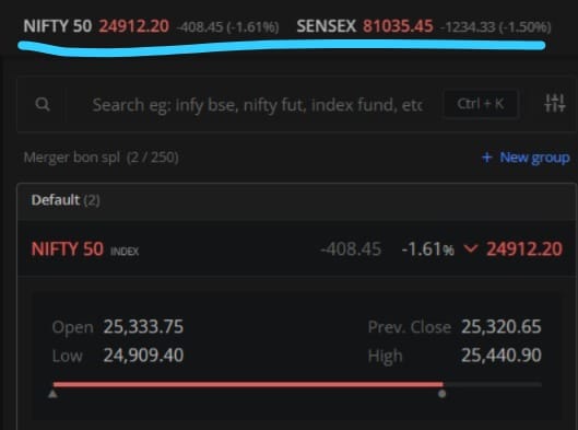 કહી શકાય કે,સેન્સેક્સ 1200 પોઈન્ટ અને નિફ્ટી 400 પોઈન્ટથી વધુ ઘટ્યો છે.બજેટ રજૂ થયા પછી શેરબજારમાં નોંધપાત્ર ઘટાડો જોવા મળ્યો છે. તેમાં સતત ઘટાડો જોવા મળી રહ્યો છે, અત્યાર સુધીમાં તેમાં 1,900 પોઈન્ટનો ઘટાડો થયો છે.