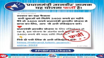 दावा: प्रधानमंत्री ज्ञानवीर योजना के तहत पंजीकरण करने पर सभी युवाओं को प्रति माह ₹3,400 दिए जाएंगे। #PIBFactCheck