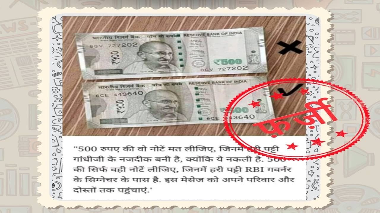 આજકાલ એક મેસેજ વાયરલ થઈ રહ્યો છે, જેમાં દાવો કરવામાં આવ્યો છે કે 500 રૂપિયાની નોટ નકલી છે, જેમાં લીલી પટ્ટી આરબીઆઈ ગવર્નરની સહી પાસે નહીં પરંતુ ગાંધીજીની તસ્વીર પાસે છે.