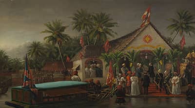 આ ઉપરાંત ભારતના પ્રખ્યાત ચિત્રકાર રાજા રવિ વર્માએ 1881માં બનાવેલું ત્રાવણકોરના મહારાજ અને એમના ભાઈ થર્ડ ડ્યુક ઓફ બકિંગહામનું સ્વાગત કરતા હોય એ પ્રસંગનું ચિત્ર છે, જ્યારે ત્રીજું ચિત્ર ‘ગ્રે ન્યૂડ’ અકબર પદમસીએ 1960માં તૈયાર કરેલું છે.