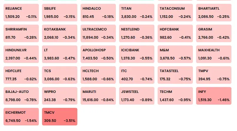 નિફ્ટના ટોપ લુઝર્સ
