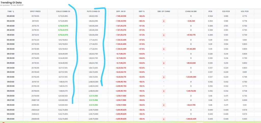 નિફ્ટીના ઓપનિંગ સમયે આજે ઇન્ટ્રાડે ઘટાડો ફક્ત એક ટ્રેપ છે, કારણ કે પુટ સાઇડ OI માં કોઈ નોંધપાત્ર ફેરફાર થયો નથી, જ્યારે કોલ સાઇડમાં લાખોમાં OI માં ઝડપી વધારો જોવા મળ્યો હતો, જેના કારણે બેર્સને શરૂઆતમાં બજારમાં પ્રભુત્વ મેળવવાની છૂટ મળી હતી. હવે, તેઓ દિવસ દરમિયાન ગમે ત્યારે તીવ્ર વાપસી કરી શકે છે અને નિફ્ટીને ઉપર તરફ લઈ જઈ શકે છે.