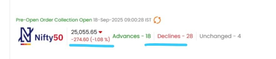 સાવધાન – નિફ્ટીમાં આજે પ્રોફિટ બુકિંગ થઈ શકે છે, અને પ્રી-ઓપનના પહેલા 28 સેકન્ડમાં નિફ્ટી -274.60 પોઈન્ટ ઘટી જવાથી આનો સંકેત મળ્યો હતો.