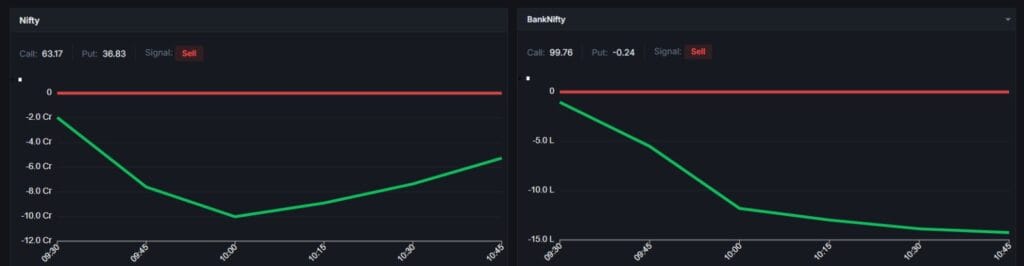 મોટા નાણાંના ખેલાડીઓએ 9:23 વાગ્યે એક જ મિનિટમાં OI દિશામાં માઇનસ 6.3 મિલિયનનો ફેરફાર કર્યો. જ્યારે પણ આવું થાય છે, નિફ્ટી નીચે જાય છે.