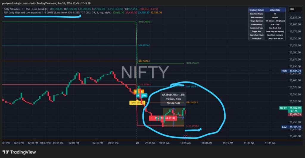 PSP ડેઇલી હાઇ અને લો સૂચકે આજના ઉચ્ચ અને નીચલા સ્તરો નીચે આપ્યા છે. નાના નીચલા સ્તરો તૂટી ગયા છે, અને નિફ્ટી હવે મુખ્ય નીચલા સ્તર તરફ આગળ વધી રહ્યો છે.