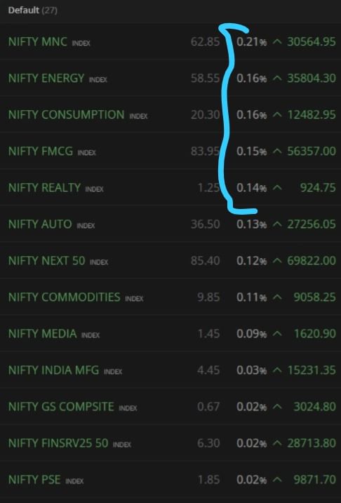 નિફ્ટીના જે ઈન્ડેક્સ જે લીલા રંગમાં છે, તે પણ મોટી સંખ્યામાં લીલા રંગમાં નથી