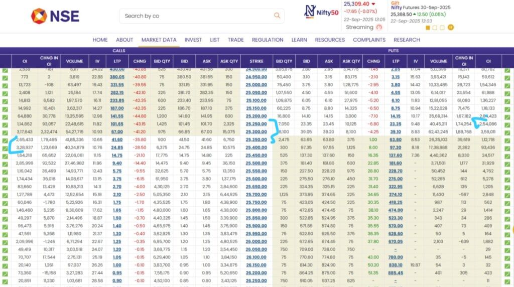 નિફ્ટી 25300 થી 25350 ની રેન્જમાં અટવાયેલો હોય તેવું લાગે છે કારણ કે બુલ્સ અને બેર્સે આ બંને સ્ટ્રાઇક ભાવો પર ભારે પોઝિશન બનાવી છે.