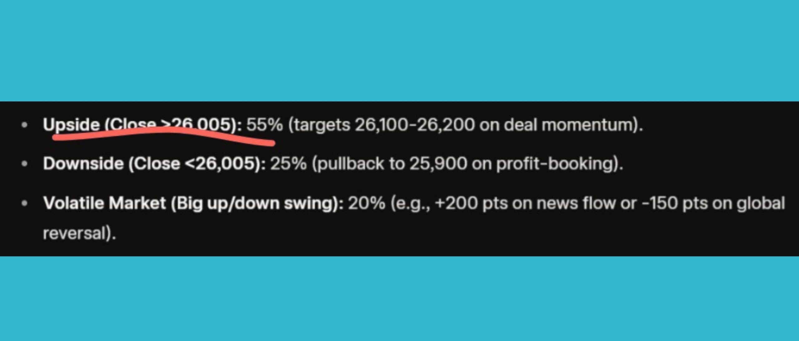 ૨૬૦૦૦ થી ૨૬૧૦૦ સુધી મજબૂત પુટ રાઇટિંગ અને કોલ ખરીદી થઈ રહી છે, જેનો અર્થ એ છે કે આ સ્તરો પર તેજી મજબૂત પકડ મેળવી રહી છે.