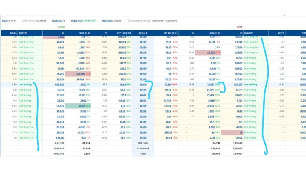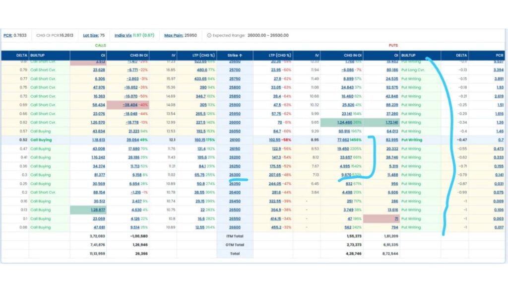 26000 થી 26100 સુધી મજબૂત પુટ રાઇટિંગ અને કોલ ખરીદી થઈ રહી છે