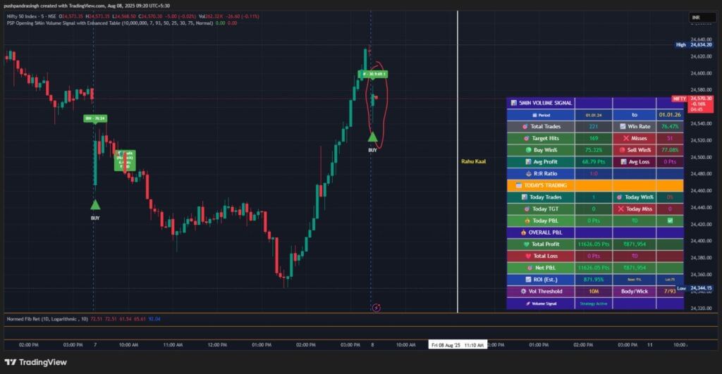 5 મિનિટના ટાઈમફ્રેમ પર, દિવસની પહેલી કેન્ડલ પર ખરીદનો સંકેત આવ્યો