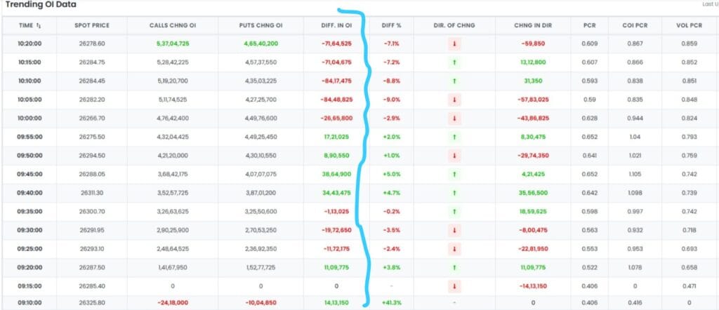 નિફ્ટી હાલમાં દિશાહીન છે અને દિશા શોધી રહી છે. વચ્ચે, મોટા પૈસાવાળા ખેલાડીઓ પણ ફાંસો બિછાવી રહ્યા છે. એક કલાકથી વધુ સમય વીતી ગયો છે, પરંતુ OI માં તફાવત હજુ સુધી 1 કરોડને વટાવી ગયો નથી.