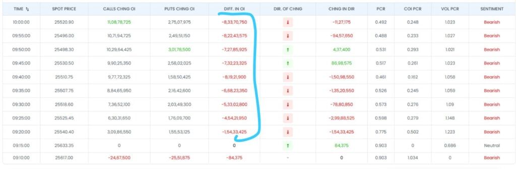 ફક્ત પ્રથમ 45 મિનિટમાં, નિફ્ટીનો OI માં તફાવત 8 કરોડને વટાવી ગયો છે. આવું સામાન્ય રીતે થતું નથી. પરંતુ જ્યારે પણ આવું થાય છે, એટલે કે, બજાર ખુલ્યાના પહેલા કલાકમાં 8-10 કરોડનો OI તફાવત, ત્યારે સમજો કે દિવસના બીજા ભાગમાં બજાર ઝડપથી ઉલટશે.