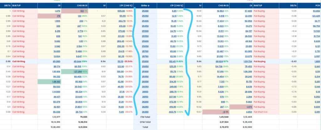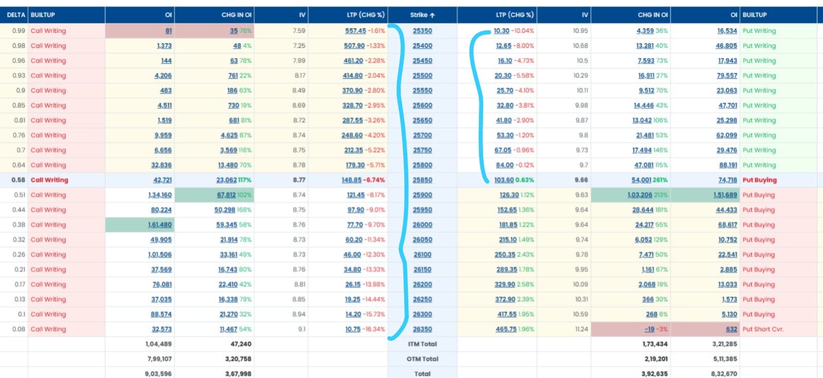 નિફ્ટી હવે સંપૂર્ણપણે નીચે તરફ આગળ વધી રહ્યું છે, કારણ કે પુટ-સાઇડ પ્રીમિયમ સતત વધી રહ્યા છે અને કોલ-સાઇડ પ્રીમિયમ ઘટી રહ્યા છે.