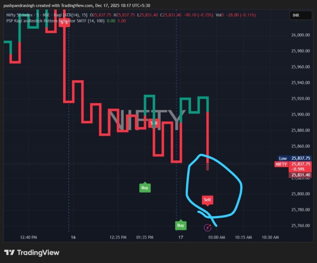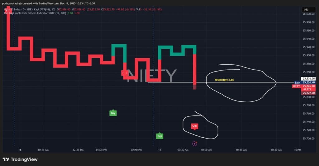 Kagi Indicator પર, નિફ્ટીએ પાછલા દિવસના નીચલા સ્તરને તોડી નાખ્યું
