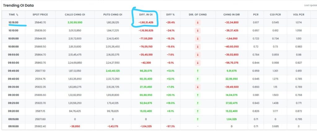 આજે બજાર ખુલ્યાના એક કલાક પછી, પહેલી વાર OI માં તફાવત નકારાત્મક 15 મિલિયનને વટાવી ગયો