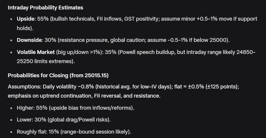 આજે ભારતીય બજારો માટે મિશ્ર સંકેતો મળી રહ્યા છે. FII રોકડ અને ફ્યુચર બંનેમાં ખરીદી કરી રહ્યા હતા. કેટલાક શોર્ટ્સ પણ આવરી લેવામાં આવ્યા હતા. જોકે, GIFT નિફ્ટીમાં થોડો નરમાઈ જોવા મળી રહી છે. એશિયામાં મિશ્ર ટ્રેડિંગ