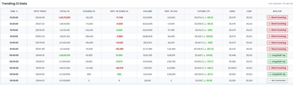 છેલ્લા 25 મિનિટથી નિફ્ટી ફ્યુચરમાં શોર્ટ કવરિંગ ચાલી રહ્યું છે. આનો અર્થ એ થયો કે નિફ્ટી મંદીનો અનુભવ કરતી વખતે જે FII એ ટ્રેડિંગ કર્યું હતું તેઓ હવે નિફ્ટીમાંથી બહાર નીકળી રહ્યા છે કારણ કે તેઓ હવે નિફ્ટીને તેજીમાં જુએ છે.