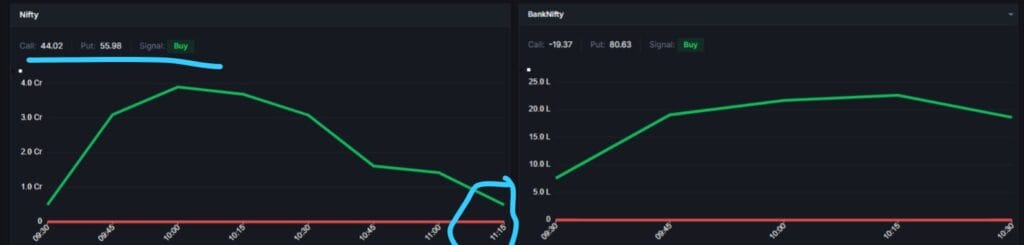 ઇન્ટ્રાડે ટ્રેન્ડમાં, ઓપ્શન્સ સિગ્નલ અને VWAP સિગ્નલ બંને બાય છે, જેનો અર્થ એ થાય કે નિફ્ટી મજબૂત રીતે તેજીમાં છે.
