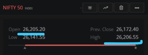 Nifty’s Open=High almost Same આનો અર્થ એ છે કે નિફ્ટી આજે મંદીનો રહેશે. જોકે, આજે સમાપ્તિ દિવસ હોવાથી હજુ પણ સાવધાની રાખવી જરૂરી છે.