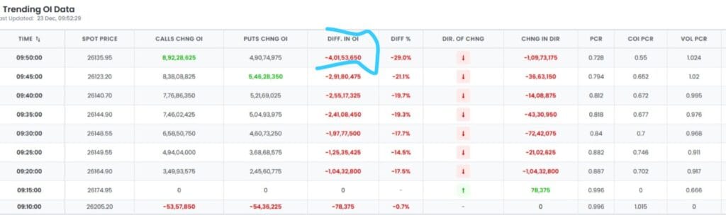 નિફ્ટીમાં OI માં Difference in OI negative 4 કરોડને પાર કરી ગયો. નિફ્ટી પર રીંછની પકડ ઝડપથી મજબૂત થઈ રહી છે.