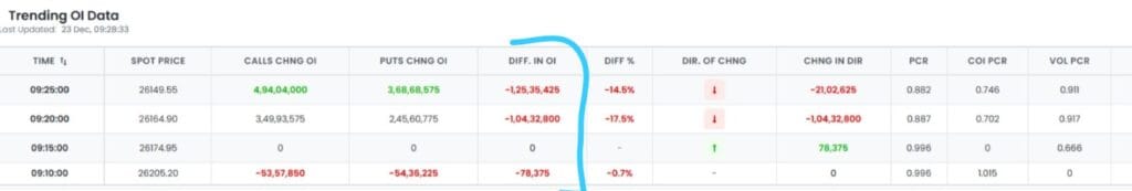 બજાર ખુલ્યાના પ્રથમ 10 મિનિટમાં, નિફ્ટી OI માં નકારાત્મક 1.25 કરોડના તફાવતના સ્તરે પહોંચી ગયો, જે એ પણ સૂચવે છે કે આજે સમાપ્તિ દિવસે ઘણા ટ્રેપ્સ જોઈ શકાય છે.