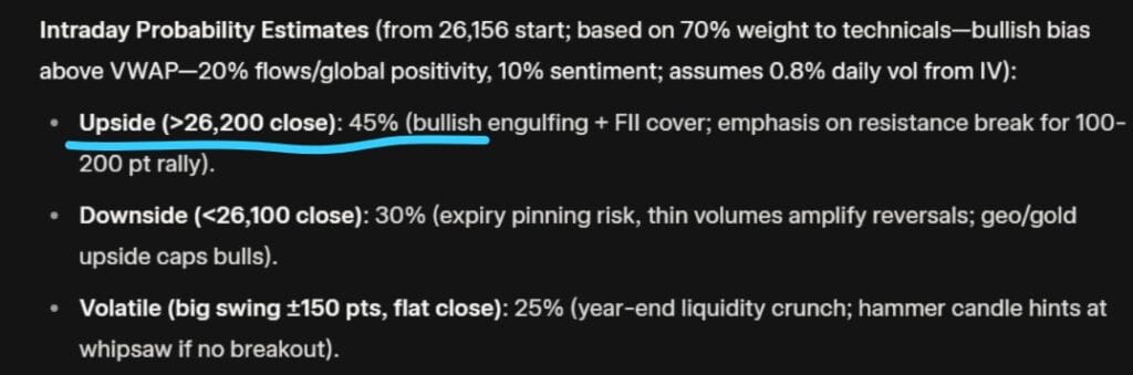 ભારતીય બેન્ચમાર્ક્સે રજા-ટૂંકા સપ્તાહની શરૂઆત મજબૂત નોંધ પર કરી હતી. નિફ્ટી ઇન્ટ્રાડે 26,150 ની ઉપર વધ્યો હતો, જે તમામ ક્ષેત્રોમાં ખરીદી, સકારાત્મક વૈશ્વિક સંકેતો અને FII અને DII દ્વારા સતત ખરીદીને કારણે થયો હતો.