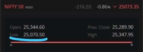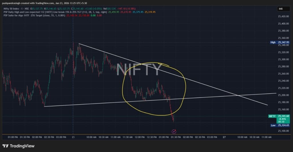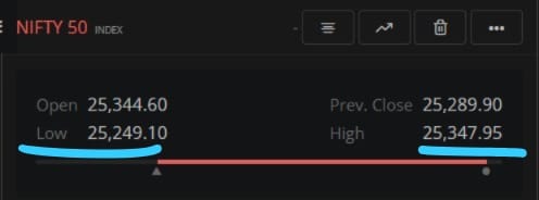 PSP ડેઇલી હાઇ અને લો અપેક્ષિત 112 સૂચક મુજબ, નિફ્ટી લગભગ તેના દિવસના નીચલા સ્તર 25236 પર પહોંચી ગયો