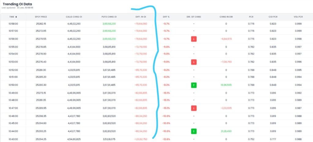 નિફ્ટી ધીમે ધીમે પરંતુ ચોક્કસ તેજીમાં આવી રહ્યો છે, જે OI (નકારાત્મક) માં સતત ઘટતા તફાવત દ્વારા સૂચવવામાં આવે છે.