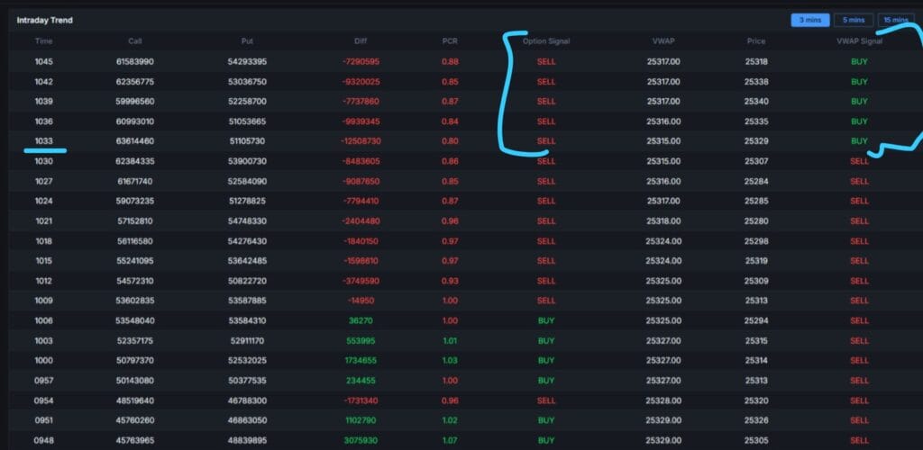 નિફ્ટી આજે રિટેલર્સને રોલર કોસ્ટર રાઈડ આપી રહ્યું છે. 10:33 વાગ્યે, VWAP પર ફરીથી ખરીદી સંકેત દેખાયો, પરંતુ વિકલ્પ સંકેત “વેચાણ” રહ્યો.
