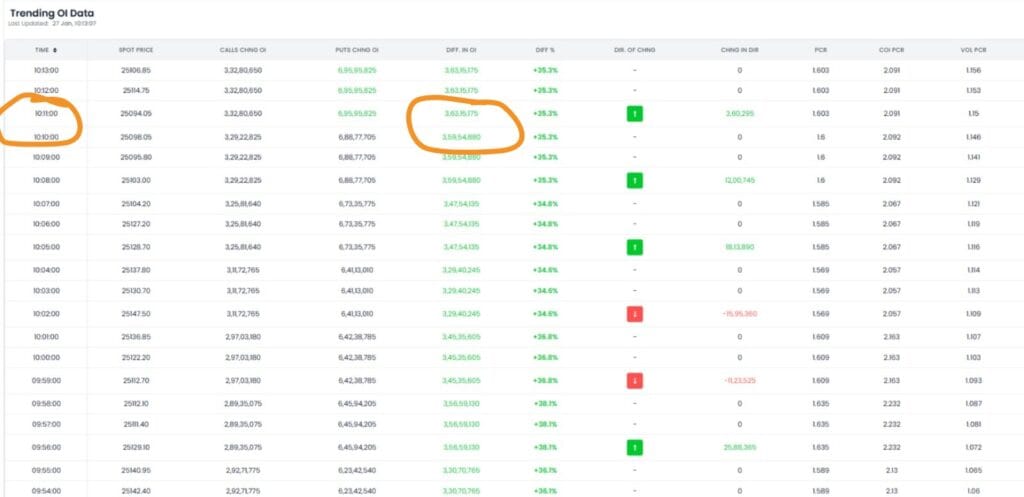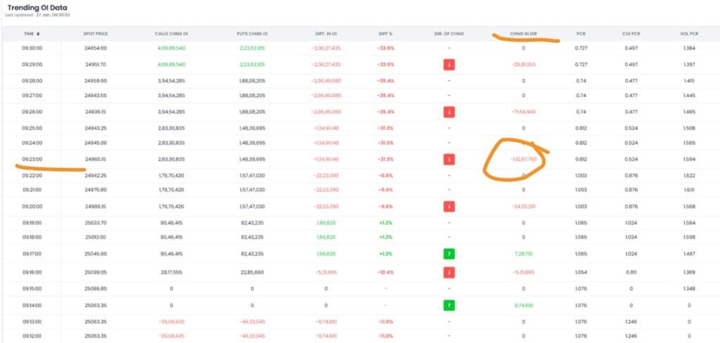 નિફ્ટીએ ફરી એક વાર પોતાનો રસ્તો બદલી નાખ્યો છે. OI માં તફાવત ફક્ત એક મિનિટમાં લગભગ 30 મિલિયનનો ઘટાડો થયો છે, જેનો અર્થ છે કે નિફ્ટી ફરીથી ઘટી શકે છે.