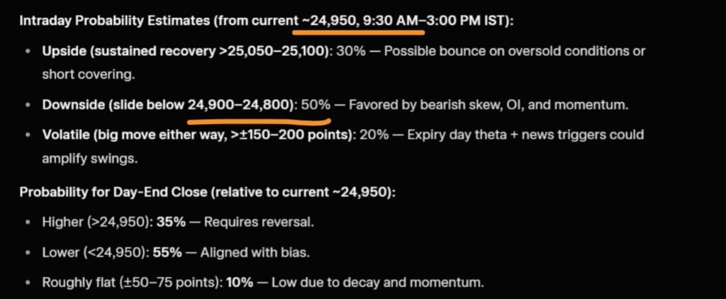એટલે કે, સવારે 9:23 વાગ્યે 24947 ના સ્તરથી, નિફ્ટી 30 થી 100 પોઈન્ટ ઘટવાની શક્યતા છે.