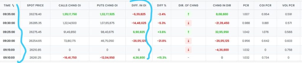બજાર ખુલતાની સાથે જ નિફ્ટીએ સર્વકાલીન ઉચ્ચતમ સ્તર હાંસલ કર્યું, પરંતુ હવે તે દિશા સ્થાપિત કરવામાં સંઘર્ષ કરી રહ્યું છે. બુલ્સ અને રીંછ વચ્ચે ભીષણ યુદ્ધ ચાલી રહ્યું છે, અને પરિણામે, OI માં તફાવત દર પાંચ મિનિટે દિશા બદલી રહ્યો છે. વધુમાં, OI માં તફાવત 5 મિલિયન સુધી પણ પહોંચ્યો નથી. તેથી, હાલ માટે ટ્રેડિંગથી દૂર રહો.