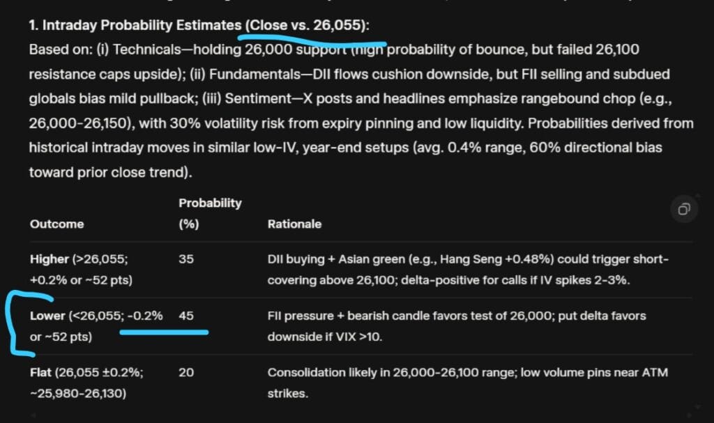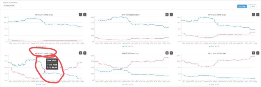 રાત્રે 9:59 વાગ્યે 26050 ની સ્ટ્રાઇક પર કોલ અને પુટ ક્રોસ થતાંની સાથે જ સ્પષ્ટ થઈ ગયું કે નિફ્ટી હવે નીચે જશે.
