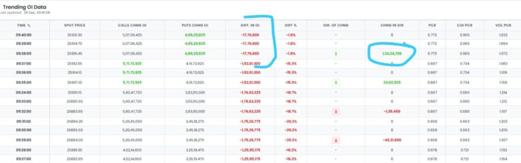 સવારે 9:38 વાગ્યે, મોટા પૈસાવાળા ખેલાડીઓએ ઘટતા બજારમાં અચાનક OI ને મંદીથી તેજીમાં બદલી નાખ્યો