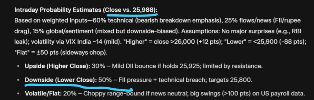 ભારતીય બજારો માટે મિશ્ર સંકેતો ઉભરી રહ્યા છે. FII એ રોકડ અને ફ્યુચર્સમાં સંયુક્ત રીતે ₹6,000 કરોડથી વધુનું વેચાણ કર્યું છે. GIFT નિફ્ટી થોડો નીચો ટ્રેડ કરી રહ્યો છે. એશિયા પણ મિશ્ર છે. દરમિયાન, યુએસ સૂચકાંકોમાં ગઈકાલે વધારો થયો હતો, ડાઉ જોન્સ ઇન્ડસ્ટ્રિયલ એવરેજ (DJI) 400 પોઈન્ટથી વધુ વધ્યો હતો.