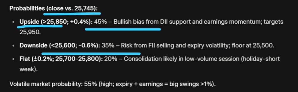 ભારતીય બજારો માટે આજે નબળા સંકેતો દેખાઈ રહ્યા છે. FIIs રોકડ અને ફ્યુચર્સ બંનેમાં વેચાયા. GIFT નિફ્ટી થોડો નબળો હતો. એશિયા પણ નબળો હતો. ગઈકાલે મિશ્ર વલણ રહ્યું. ડાઉ જોન્સ સહિત યુએસ સૂચકાંકો 200 પોઈન્ટથી વધુ ઘટ્યા હતા, પરંતુ S&P અને Nasdaq માં થોડો વધારો જોવા મળ્યો હતો