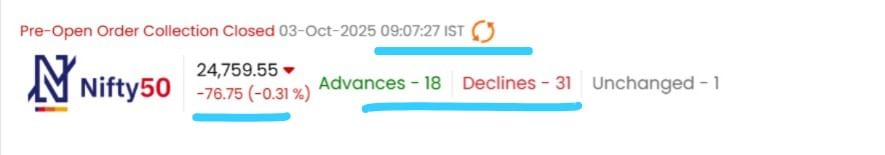 પ્રી-ઓપનિંગના પ્રથમ 07 સેકન્ડમાં Nifty50 ના પ્રથમ વાંચનથી સ્પષ્ટ થઈ ગયું છે કે તે આજે કઈ દિશામાં જઈ શકે છે. નિફ્ટી પ્રથમ 07 સેકન્ડમાં 76,75 પોઈન્ટનો ઘટાડો બતાવી રહ્યો છે.