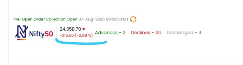 પ્રી-ઓપનમાં સેન્સેક્સ 281 પોઈન્ટ ડાઉન, નિફ્ટી 24,464ની આસપાસ છે, ત્યારે આજે ટ્રમ્પના વધારાના 25 ટકા ટેરિફના કારણે આજે માર્કેટમાં ફરી ઘટાડો નોંધાય શકે છે.