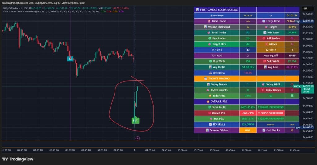 દિવસની પહેલી કેન્ડલ પર, 1 મિનિટના ટાઈમફ્રેમ પર ખરીદીનો સંકેત આવ્યો છે. એટલે કે, અહીંથી 50 થી 75 પોઈન્ટની Upside growthની મજબૂત શક્યતા છે.