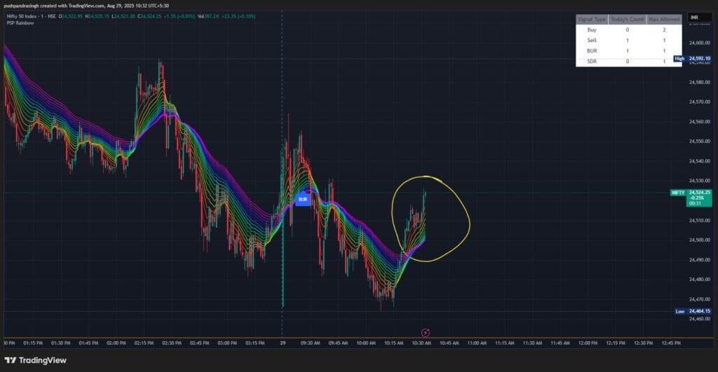દિવસની પહેલી કેન્ડલ પર 5MTF અને 1MTF બંને પર ખરીદીનો સંકેત આવ્યો છે, જેનો અર્થ એ છે કે અહીંથી નિફ્ટી 50-70 પોઈન્ટ અને વિકલ્પોમાં 10 થી 20 ટકા વધવાની શક્યતા છે.