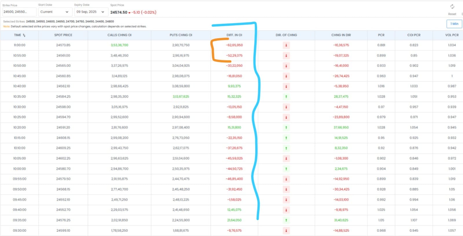 આજે દિવસમાં પહેલી વાર, OI ફેરફારમાં તફાવત 50 લાખ નેટને પાર કરી ગયો છે. તેનો અર્થ એ કે હવે બજારે નીચે તરફ જવાનું નક્કી છે.