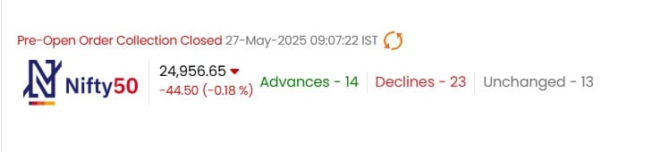 નિફ્ટી ફરી 25000 ના સ્તરે અટકી ગયો છે. બજારમાં પ્રોફિટ બુકિંગનો દબદબો રહ્યો. નિફ્ટી લગભગ 200 પોઈન્ટ નીચે ગબડ્યો. આઈટી અને બેંક શેરોમાં દબાણ આવ્યું. જોકે, મિડકેપ-સ્મોલકેપ રિકવર થવાનો પ્રયાસ કરી રહ્યા છે.