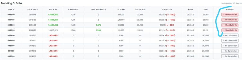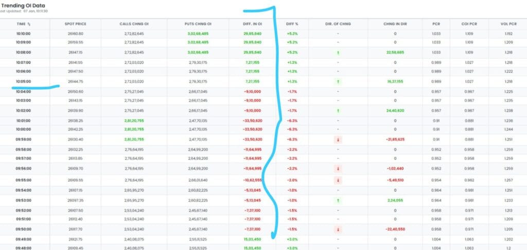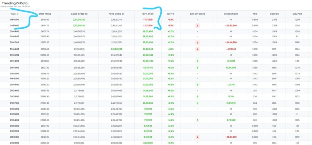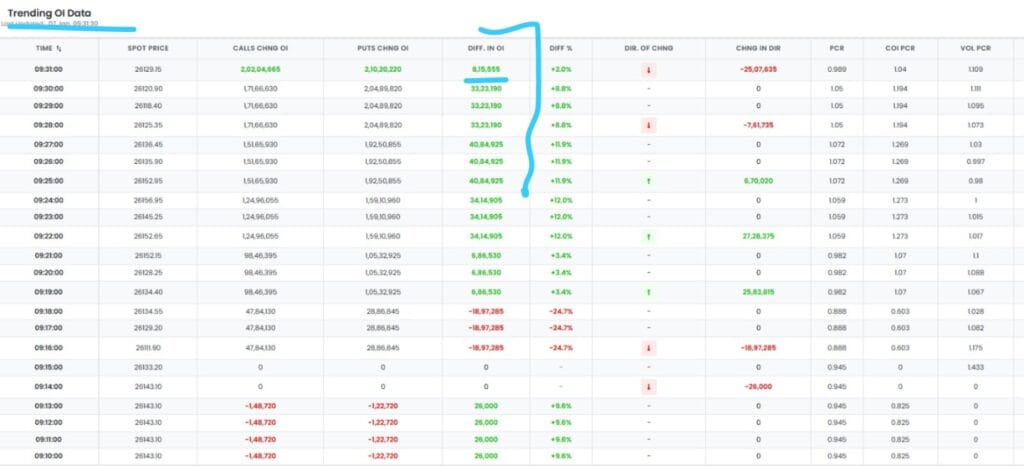 એક દિવસમાં પહેલી વાર, નિફ્ટીમાં OI માં તફાવત નકારાત્મક બન્યો. આનો અર્થ એ થયો કે તેજીવાળાઓ જમીન ગુમાવી રહ્યા છે અને બિયર્સ તેમની પકડ મજબૂત કરી રહ્યા છે.