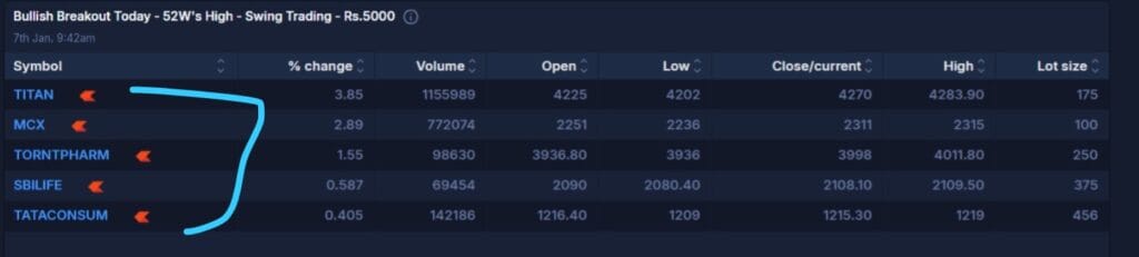 બ્રેકઆઉટ સ્કેનરમાં 52-અઠવાડિયાનો ઉચ્ચ સ્તર દેખાયો છે. કારણ કે તે પહેલાથી જ તેની 52-અઠવાડિયાની ટોચ તોડી ચૂક્યો છે, જેનો અર્થ એ થાય કે તેમાં નોંધપાત્ર ખરીદી થઈ રહી છે. આજની તેજી ટાઇટન્સના પરિણામોને કારણે પણ છે, પરંતુ છેલ્લા ઘણા દિવસોથી તે સતત વધી રહી હતી, જેના કારણે તેણે તેની 52-અઠવાડિયાની ટોચ તોડી નાખી.