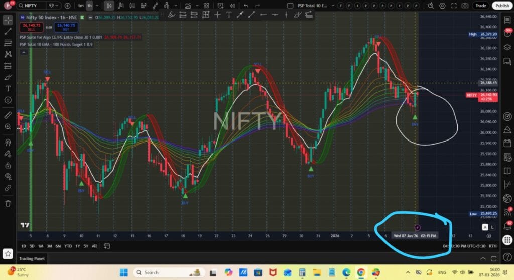 PSP ટોટલ 10 EmA સૂચકે પણ 1 કલાકના સમયમર્યાદા પર 2.15 મિનિટે નિફ્ટી પર ખરીદીનો સંકેત આપ્યો છે.